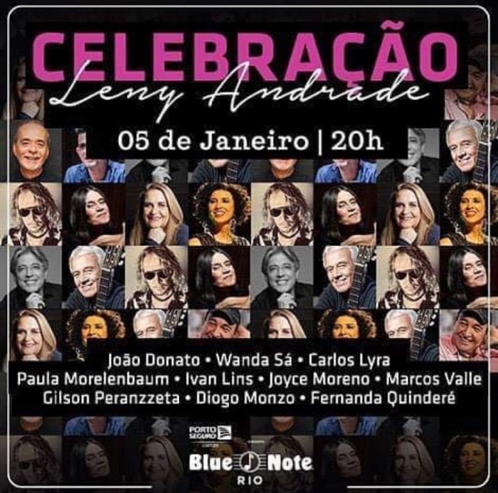 Atenção Rio, se você for estar no Rio esse sábado, 5 de janeiro 2019, desfrute desse show imperdível, Tribute a Leny Andrade no Blue Note Rio reunindo a nata da Bossa Nova – João Donato, Marcos Valle, Carlos Lyra, Joyce Moreno, Wanda Sa, Ivan Lins, Paula Morelenbaum, Gilson Peranzzetta, Diogo Monzo, Fernanda Quindere.