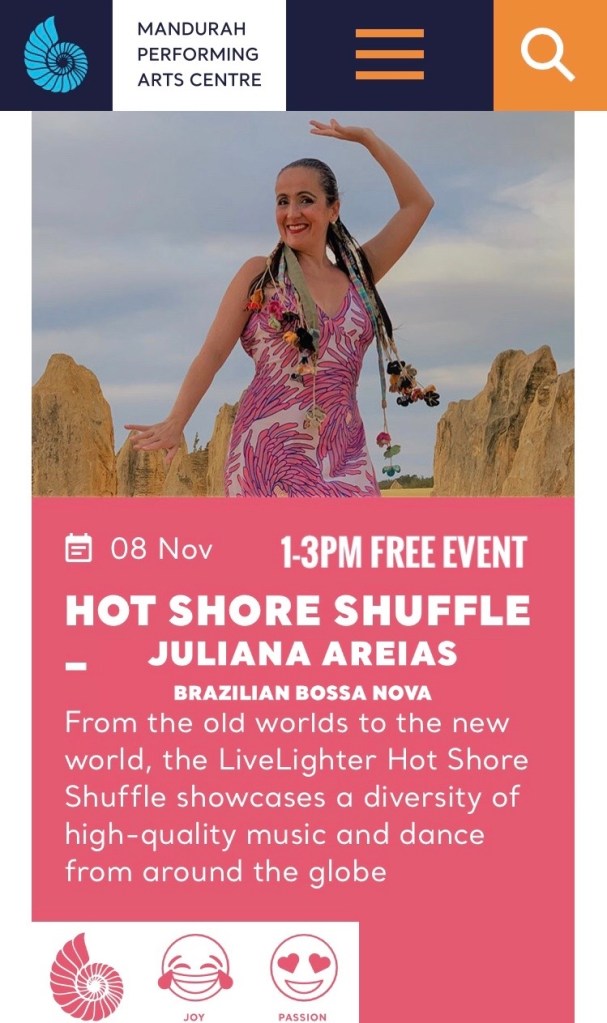 Countdown for Juliana Areias – All That Samba Concerts in Mandurah (8/11) and Fremantle (13/11):