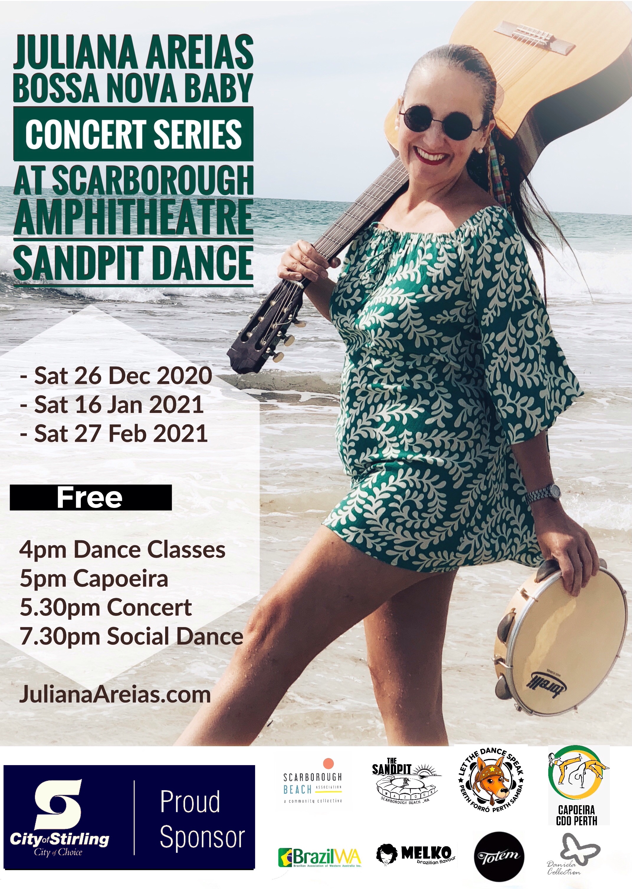 - Saturday 27th February 5.30pm-8pm – Juliana Areias Band at Scarborough Beach Amphitheatre Sandpit Dancing.