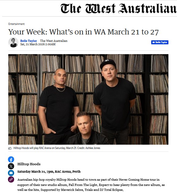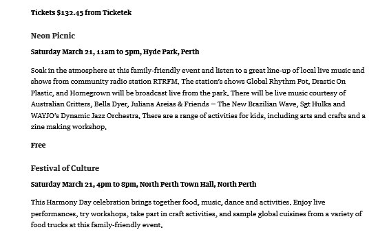 - Perth Now – What’s on – Perth, Australia -1 Dec 2022.