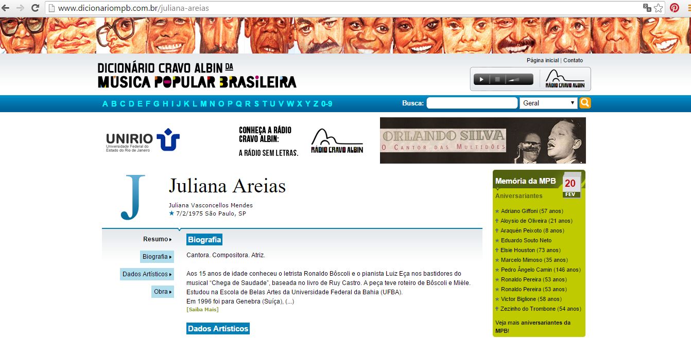 Dicionario da Musica Brasileira Cravo Album Juliana Areias