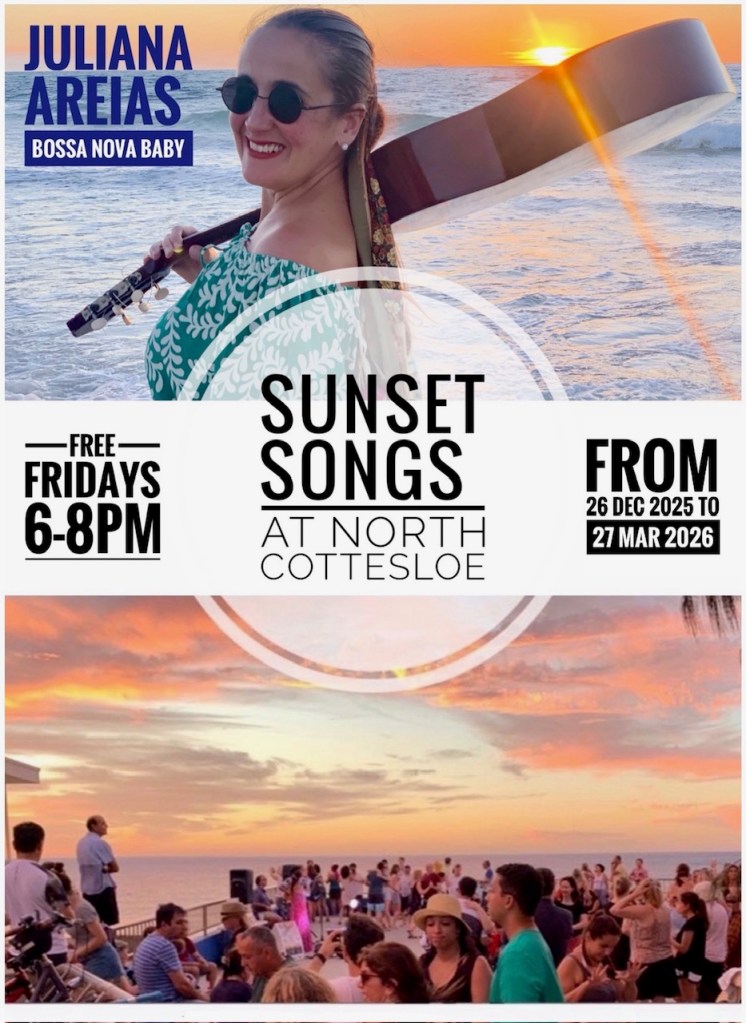 More information at: https://julianaareias.com/2025/12/20/juliana-areias-sunset-songs-at-north-cottesloe-is-back/