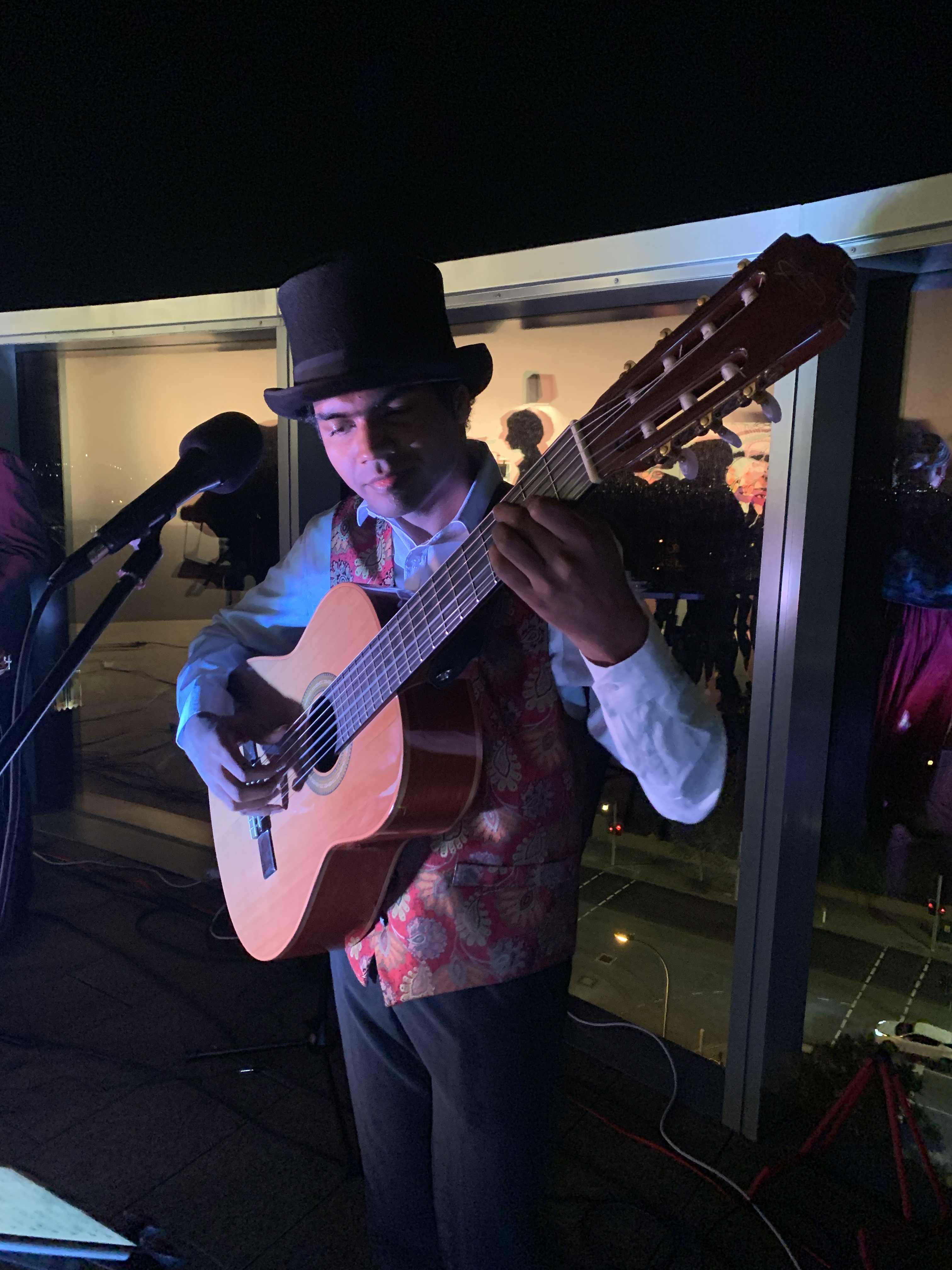Joshua de Silva 7 string guitar Juliana Areias colours of Frida Khalo sounds of Brazil Kamile Gallery Rooftop Perth CBD