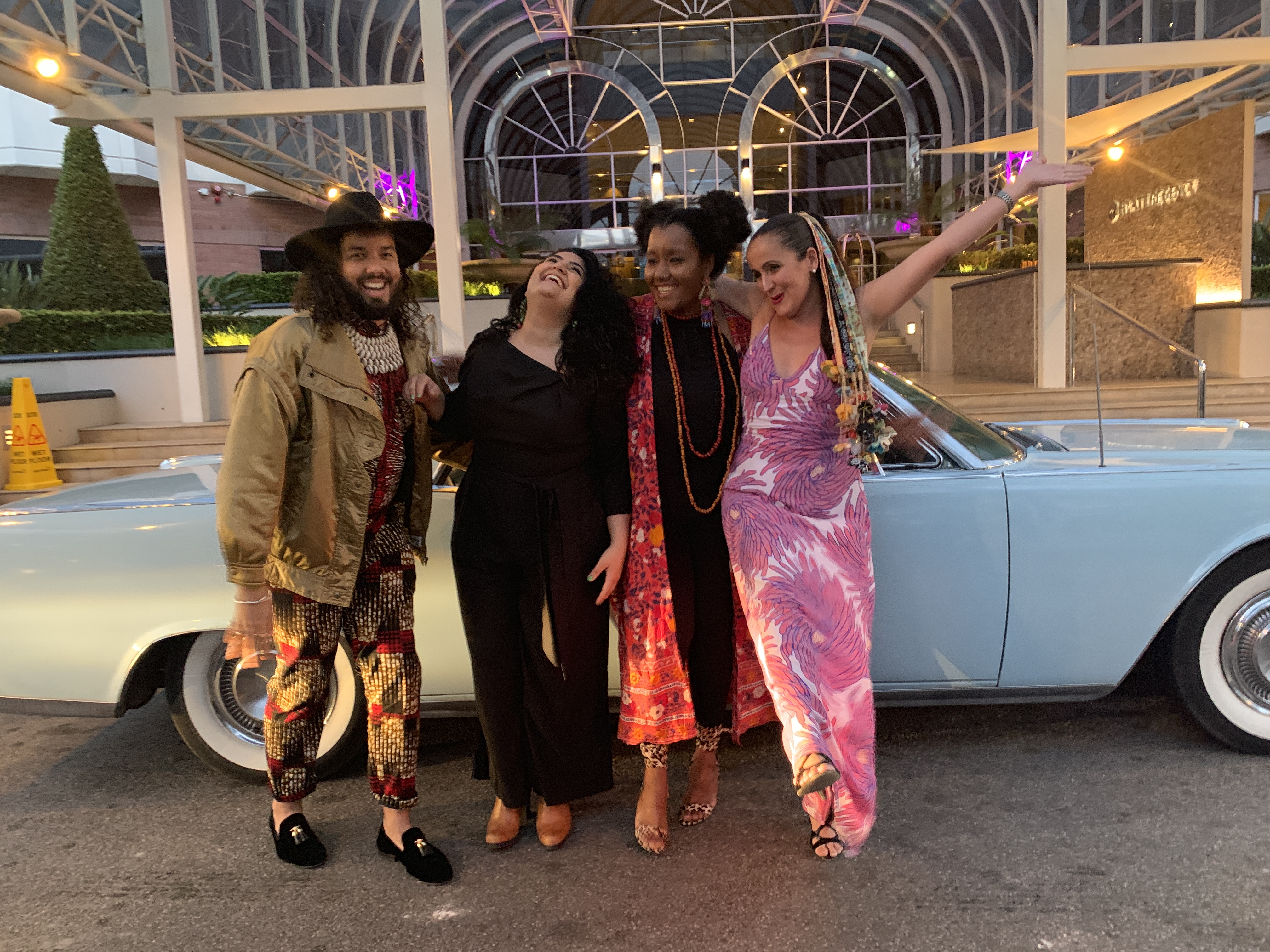 WAM Awards 2019 World Music Acts arrival 1 Quentin Thony Soukouss Internationale, Tara Tiba, Grace Barbe and Juliana Areias Geoffrey Drake-Brockman Lincoln Continental 1964