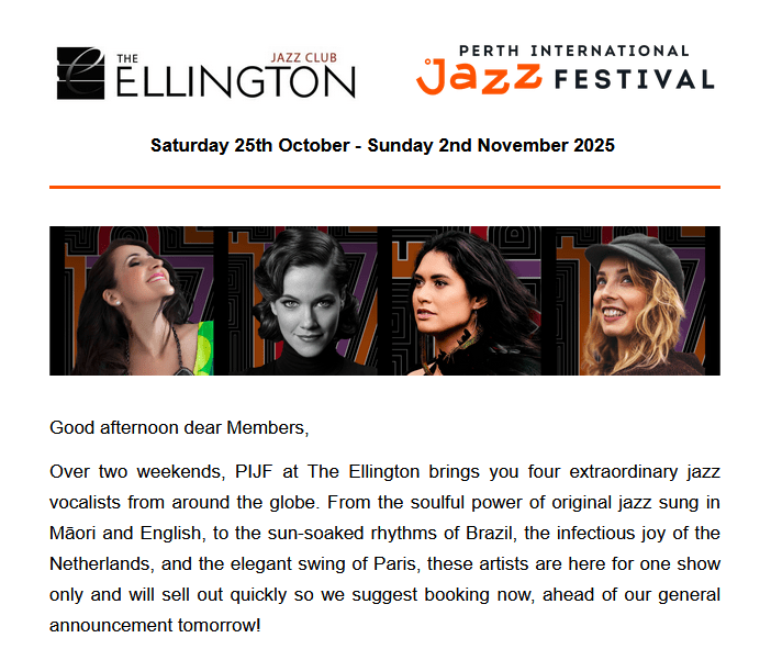 Recently seen at the Perth International Jazz Festival, Juliana has performed internationally at some of the world’s most renowned venues, including the Sydney Opera House, Montreux Jazz Festival (Switzerland), Ronnie Scott’s (London), The Green Room (New York), and Rio’s legendary Beco das Garrafas, where bossa nova was born.